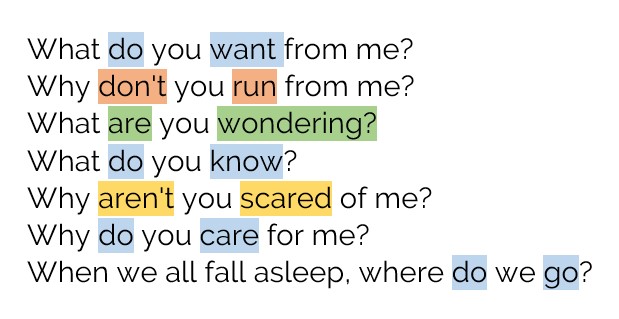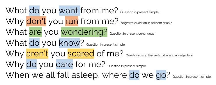 Identificar diferentes estructuras en las canciones como he hecho yo aquí puede ayudarte a contextualizar la gramática que estudias y hacerlo mucho más atractivo y relevante para ti. De este modo seguro que quieres aprender más gramática para entender más cuando escuchas una canción en inglés.