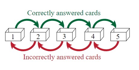 El sistema Leitner es un método muy conocido y muy efectivo para usar flash cards. Es una forma de repetición espaciada con el que estudiarás las tarjetas que te sabes con mayor frecuencia que las que ya conoces bien.
