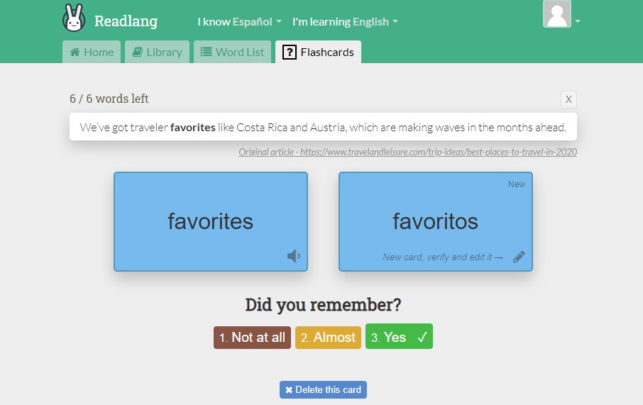 En definitiva, Readlang me parece una herramienta buenísima porque además de permitirte leer más cómodamente en inglés (o en cualquier idioma que estés aprendiendo), también te ayudará a descubrir y aprender infinidad de palabras, frases y expresiones gracias a la genial función flashcards.