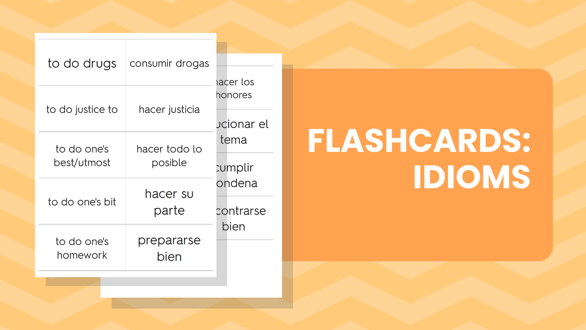 Conjunto de flashcards con idioms de Cut, Go, Have, Hold, Put, Play.